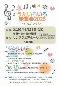 今年のサブタイトルは「いちごいちえ」です。 堺の茶人、千利休の言葉「一期一会」。今このご縁を大切にして、ここで出会えたことを喜ぶ。そして「いち」と「ご」、「1」と「5」。そう!なないろ歌・にじいろ歌が前身のサンスクエア講 […]